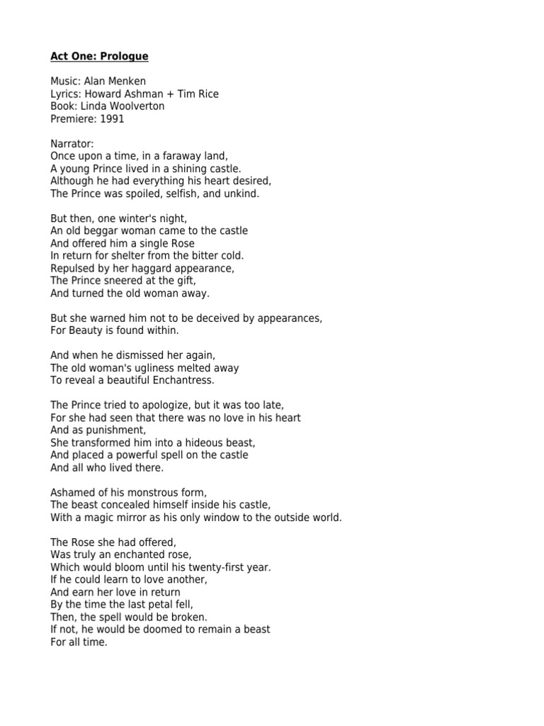 Disney S Beauty And The Beast Lyrics Song Lyrics For Musical