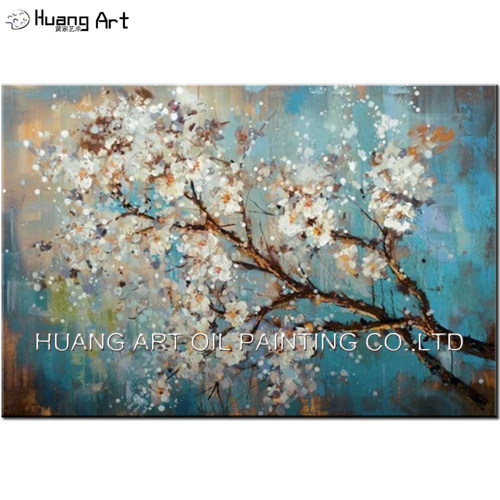 100% pintados à mão flores brancas árvore abstrata morden azul pintura a óleo sobre tela flor de ameixa parede fotos para sala estar decoração|oil painting|paintings on canvasoil painting on canvas - AliExpress