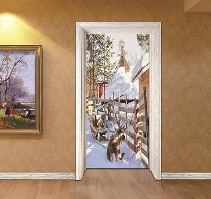 CMTO Noël Paysage modèle Porte Autocollants Chambre Maternelle Salon Chambre Enfants Chambre Fond décoration de Vacances Stickers muraux: Amazon.fr: Cuisine & Maison